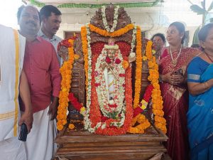 The idol was later adorned with silk garments and floral garlands, followed by Dhupa, Deepa, Naivedyam and Karpura Harati. Devotees had darshan and received Theertha Prasadams.