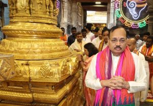 Following the darshan, he was offered Vedasirvachanam, temple prasadams, and a photo memento of Lord Venkateswara Swamy by TTD officials at Ranganayakula Mandapam within the temple complex.