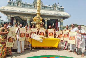 TTD Chairman B.R. Naidu unveiled the wall posters and invitation booklets at the temple premises here on Saturday.