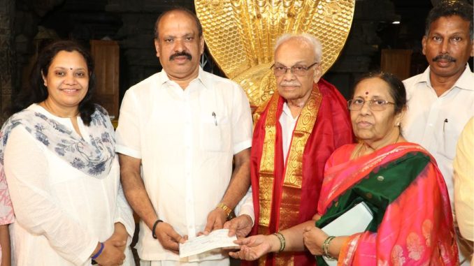 The donor handed over the demand drafts to TTD Peshkar Ramakrishna at the Ranganayakula Mandapam within the Tirumala Temple complex.
