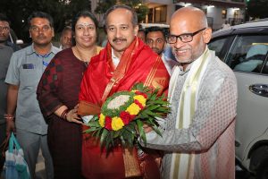 On his arrival to Gayatri Nialayam Rest House in Tirumala on Thursday evening, he was received by the TTD Incharge EO  Ch Venkaiah Chowdary, JEO  Veerabrahmam, CV SO  Muralikrishna and others.