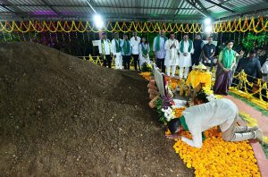 Naidu, along with his wife Nara Bhuvaneswari and farmers, participated in a Deepa Harathi ceremony at Uddandarayunipalem, where the foundation stone for the capital was laid by Prime Minister Narendra Modi.