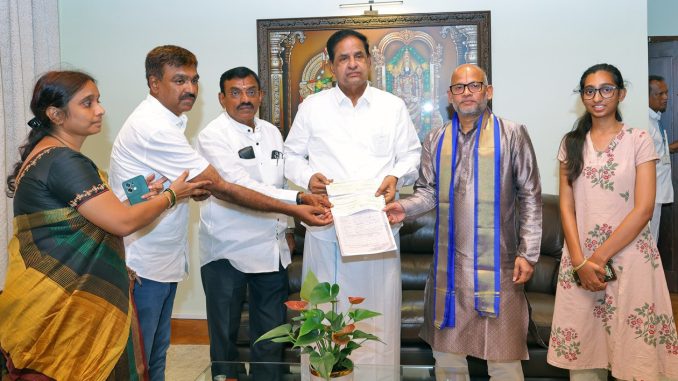 On this occasion, the donor handed over the donation demand drafts to TTD Chairman  B. R. Naidu at the Chairman’s Camp Office in Tirumala.