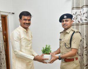 Kakinada, Feb 15 (TNT): District SP Bindu Madhav has greeted  C V Anand, Telangana Government Special Chief secretary Home affairs at the holy shrine of Annavaram near here on Sunday .