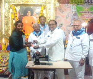 As part of the initiative, Lakshmana Rao presented a sewing machine to a needy woman who successfully completed a 30-day free tailoring training programme conducted at the Chinamushidivada Mandir.