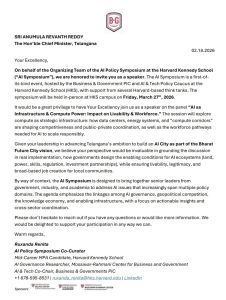 Hyderabad, Feb 22 (TNT) ) : Telangana Chief Minister Revanth Reddy has been invited to speak at the AI Policy Symposium scheduled to be held at the Harvard Kennedy School campus on March 27, 2026.