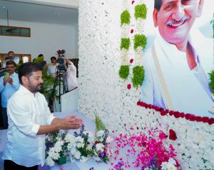 Mahabubabad, Feb 22 (TNT) : Telangana Chief Minister Revanth Reddy paid tributes to Raghavender Reddy, father of Congress state leader Vennam Srikant Reddy and Big TV Chairman Vennam Vijay Kanth Reddy, at Reddyyal village in the district on Sunday.