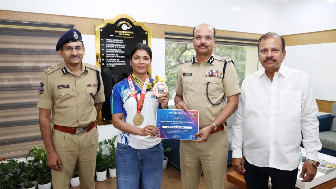 Congratulating her at his office, the DGP lauded Nikhat Zareen’s performance, stating that she has brought pride to both the Telangana Police and the State.